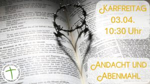 Karfreitag-Andacht mit Abendmahl + Zu Google Kalender hinzufügen + iCal / Outlook export Datum 03 Apr. 2026 Vorbei! Uhrzeit 10:30 Labels Gottesdienst Kategorie Gottesdienst Veranstalter FEZ Website http://fez-hameln.de